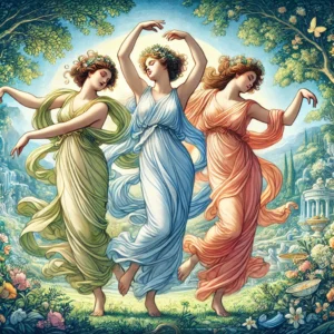 As irmãs chamavam-se, Aglaia que significa a graça do esplendor; Euphrosyna, que é a graça de caminhar alegremente; e Thalia, o contentamento com gratidão e serenidade. Juntas representam a beleza, a criatividade, a fertilidade e sobretudo, a dança da leveza. Elas são deusas que sabem dançar!